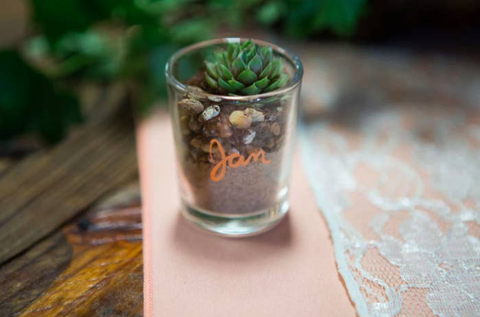 A reputation-tag may also be a giveaway, simply as your bouquet may also be a centerpiece. Expend minimal effort for the utmost payoff. See this succulent favor